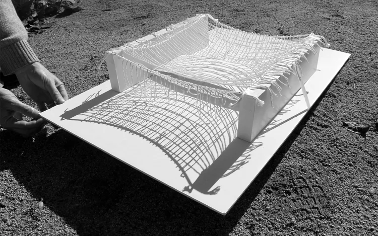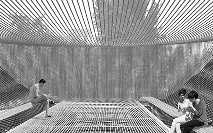 El proyecto "Telar del agua y los sueños" construye un paisaje de líneas entrelazadas, un contraste de luces y sombras, que desvanecen los límites visuales del espacio.